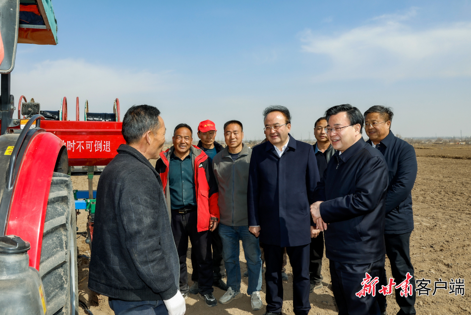 胡昌升先后深入涼州區(qū)松樹(shù)村,民勤縣上案村、河?xùn)|村,古浪縣暖泉村,天??h德吉新村,走進(jìn)田間地頭,實(shí)地察看春小麥播種、高標(biāo)準(zhǔn)農(nóng)田建設(shè)和鄉(xiāng)村振興等情況,與基層干部群眾深入交流。他強(qiáng)調(diào),“一年之計(jì)在于春”。要加力做好種子、化肥、農(nóng)膜、農(nóng)藥等農(nóng)資保供穩(wěn)價(jià)工作,為春耕春播提供全程技術(shù)服務(wù),強(qiáng)化春季田間精細(xì)化管理,著力提高農(nóng)業(yè)生產(chǎn)組織化程度,推進(jìn)良田、良種、良機(jī)、良法、良制“五良”融合發(fā)展,為全年農(nóng)業(yè)豐收打下堅(jiān)實(shí)基礎(chǔ)。要大力發(fā)展現(xiàn)代寒旱特色農(nóng)業(yè),優(yōu)先發(fā)展高效節(jié)水農(nóng)業(yè),深入推進(jìn)農(nóng)業(yè)產(chǎn)業(yè)結(jié)構(gòu)調(diào)整,不斷培育壯大農(nóng)業(yè)新質(zhì)生產(chǎn)力。要扎實(shí)推進(jìn)鞏固拓展脫貧攻堅(jiān)成果同鄉(xiāng)村振興有效銜接,統(tǒng)籌抓好鄉(xiāng)村建設(shè)、鄉(xiāng)村發(fā)展、鄉(xiāng)村治理,千方百計(jì)推動(dòng)農(nóng)業(yè)增效益、農(nóng)村增活力、農(nóng)民增收入。