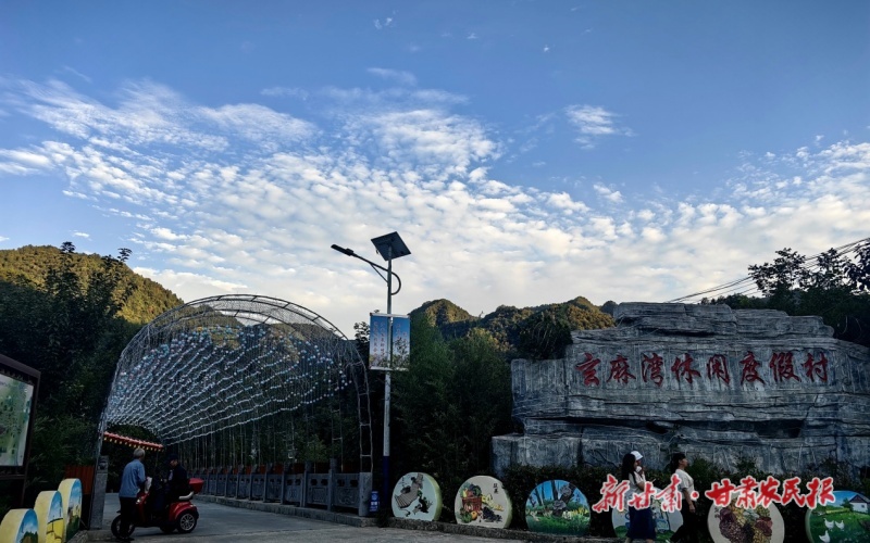 盛夏暑氣漸去,風(fēng)里終于有了些許涼意,驅(qū)車至康縣碾壩鎮(zhèn)玄麻灣村,石刻的“玄麻灣休閑度假村”路牌靜靜佇立,迎接著四方來客。目之所及,青瓦白墻的屋舍錯(cuò)落有致,掩映于綠樹濃蔭之間,一灣清澈的溪水在村前潺潺流過,偶見小魚自在游弋。
