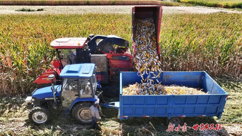 近日,古浪縣直灘鎮(zhèn)直灘村的玉米田里一派繁忙景象,大型收割機(jī)正開足馬力在廣袤的田野間穿梭,金黃的玉米穗被整齊地摘取,農(nóng)戶們緊隨其后,將一車車飽滿的玉米運(yùn)出田間,臉上寫滿了豐收的喜悅。