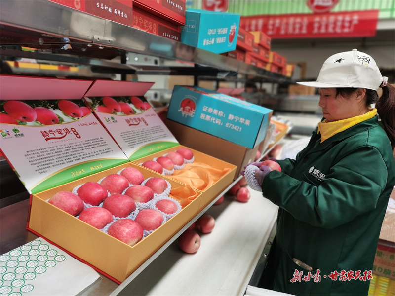 為了最大限度提升蘋果價(jià)值,靜寧縣不斷延伸產(chǎn)業(yè)鏈,推動蘋果從“論斤賣”向“論個(gè)賣”“賣產(chǎn)品”向“賣品牌”轉(zhuǎn)變。