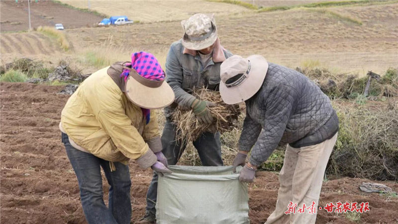 深秋時節(jié),天??h西大灘鎮(zhèn)馬場村的中藥材種植基地里藥香沁人,村民們趁著晴好天氣,正忙碌地采挖成熟的黨參、黃芪等中藥材,一根根藥材被村民從松軟的土壤中取出,隨即進行去土、分揀、裝車,田間地頭洋溢著豐收的喜悅。